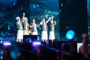 The lights went dark at 6pm. Massive screens at the main stage showed TXT dressed in outfits fit for royalty, before switching to a montage of them running in a field, then away from the crowd. The concert opened with stunning visual effects, immediately igniting the venue as the boys powered through a series of high-energy tracks.