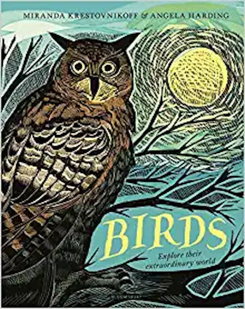 The linocuts in this book alone are worth buying the book. You could frame each of these spreads and hang them on your wall. But you also get a dearth of information about all kinds of birds, from raptors to penguins; and about their characteristics, from feathers to flocks.