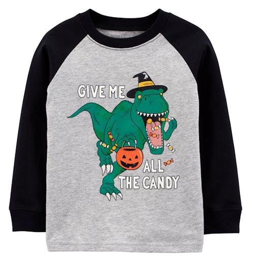 As if dinosaurs weren’t cool enough, you can pair this glowing long-sleeve Halloween dino top (with fits for up to 24-month-olds) with a pair of glow-in-the-dark leggings for a bright spin on the prehistoric reptiles. It’s scary how fun it is.