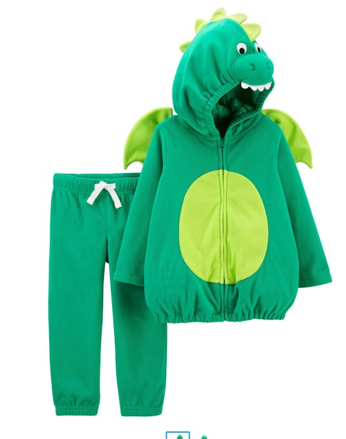 Also available in baby sizes, this dragon ensemble gives the fantastical animal an adorable edge. The hoodie’s teeth, horns, chartreuse wings, and tail add the details needed to take the microfleece two-piece into real costume territory.
