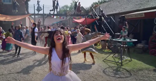 Yes, the trailer is officially here! In it, Cabello can be seen sewing clothes for her own business, “Dresses by Ella” and having big dreams in her little castle village.