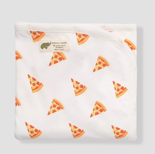 If you’re going for a traditional nursery, there are grey and white striped, pink and white striped, and navy blue and white striped patterns in the collection. For something a little more whimsical, but still traditional, go for the blue sailboats, pink hearts, stars, unicorns, flowers, or the classic Monica + Andy elephants. However, if you want something totally fun and different, consider one of their more unique options like deer, palm leaves, puppies, donuts, lightning bolts, coffee cups, or (arguably the best one) pizza.