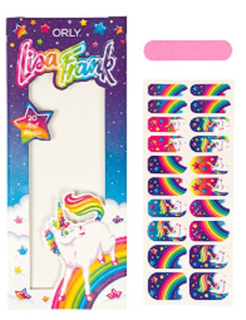 We’ve all seen rainbows before, right? And kittens? Cute, but not exactly otherworldly. And if you’re a parent to little ones, chances are you’ve got more unicorn stuffies than you know what to do with. So what exactly is it about a Lisa Frank sticker that sends ‘80s, ‘90s, and even some early-aughts babies into a euphoric fever-dream state? Is it the insanely vibrant, unnatural colors (like pearlescent slime green), or the eyeball-stimulating iridescence? Maybe it’s the heart-tug that comes with remembering the Trapper Keepers, pencils and school supplies of your youth, all dressed up in cellophane yet again for your own kids to hoard. Whatever the magic, it’s real. And it’s back, only now you can wear that famous rainbow-tailed unicorn on your nails.