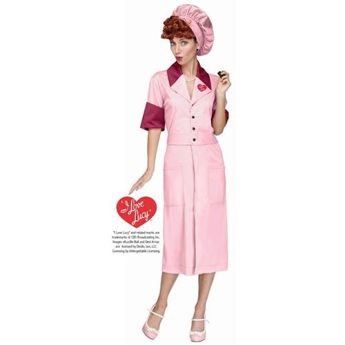 I don’t know of many people who don’t love Lucy, or at the very least wouldn’t know immediately who you were dressed up as when you put on this Lucy at the Candy Factory Walmart Halloween costume. While unfortunately the costume doesn’t come with the wig, it does come with the dress and the iconic hat. However, Walmart also sells a Lucy wig for just $15. But personally, I want to know where the model got her shoes from, because I’d definitely be rocking those babies on a regular basis. And if you haven’t seen this iconic Candy Factory episode from I Love Lucy, I highly recommend checking it out ASAP.