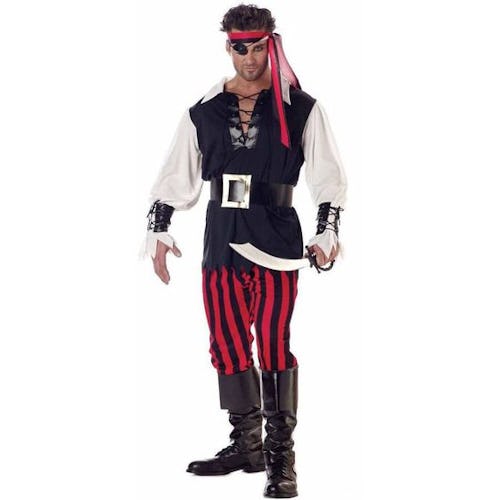 A pirate is a classic Halloween staple these days and this adult pirate Walmart Halloween costume checks all the boxes for a perfect pirate ensemble. It comes with a black and white shirt, vest, wrist cuffs, belt, black-and-red striped pants and boot covers, according to the description. Oh, and the head tie is included also.