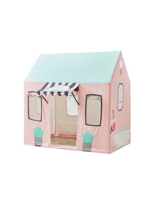 Again, some of the best gifts for three year olds allow for some kind of imaginative play, and a playhouse is no different. What kind of playhouse you get will depend on where you plan to put it (outdoors or inside), how much space you have for it, and whether or not you’re looking for it to come with bells and whistles. For something simple that can be set up inside or outside, this beauty salon house is a great option. It has wood framing and fabric covering that’s printed to look like a little spa. The house also features window cutouts with roll down shades and plenty of space to play.