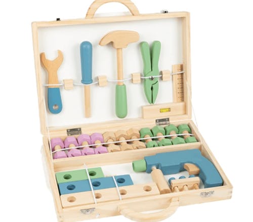 There’s just something about power tools, screw drivers, and hammering nails that is so much fun for kids, so a pretend tool set is always a great gift for a little one. There are all kinds of sets out there, so finding the right one depends on what you're looking for. For something basic, this wood set is perfect. It comes with all of the essentials like a level, ruler, hammer, wrench, pliers, and a screwdriver as well as a bunch of different nuts and bolts. When it’s not being played with, all of the tools and accessories tuck away into a little wood box for easy storage.