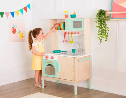 If your three-year-old loves to follow you around while you sweep, mop, or dust and just begs you to let them “help,” this kid-size set with five cleaning tools makes for a great toy. It includes a broom and dust pan, mop, cleaning brush, and duster. Each of the toys is made from high-quality materials including wood and soft fabrics and is designed to look (and work) like the real thing, so your little one will feel like they really contributed to cleaning up whenever they play with these toys (even if the only thing they’re cleaning up is a mess they created in the first place).