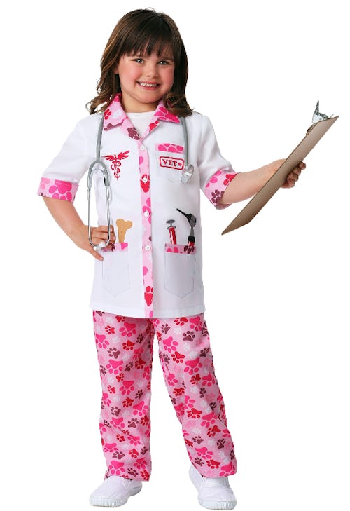 Celebrate your kid’s love of animals with this cool costume, which includes a printed lab coat and paw print pants. Add in a stethoscope for a little more realism.