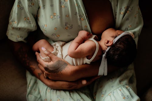 Jeanne Cygnus, an Illinois-based International Board-Certified Lactation Consultant (IBCLC) who heads Cygnus Lactation Services and has worked with thousands of families, tells Romper that there are two different types of gas: swallowed air and gas that’s released during the digestive process. Babies typically swallow air either when they are crying very hard or when they are gulping — babies who are breastfeeding will often swallow less air than babies who are bottle-feeding, since they can more easily control the flow of milk.
