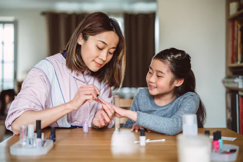These easy mommy-and-me manicure ideas are so cute for parents and their little ones who want matching nail designs using polish, nail decals, and more.