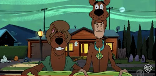 In Romper’s exclusive clip from Trick or Treat Scooby-Doo!, the gang is smushed in their legendary van and lamenting their lack of important cases on their to-do list the very day before Halloween. Of course, Shaggy, the chillest member of the bunch, sees the bright side of this situation. “Dude, the way I see it, fewer freaky cases mean fewer freaky ghosts freaking us out!”