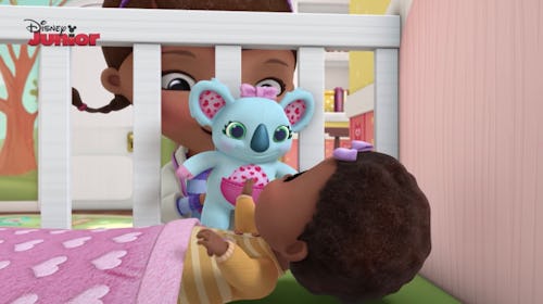 Grandma McStuffins comes to watch Doc and Donny as Mom and Dad go to pick up a baby they have adopted. When they come back, Doc helps name her baby sister Maya (with a little help from a stuffed animal). She coos and sleeps in her crib, and Doc gives her the new toy. She may already be a big sister to Donny, but she’s still doing a great job adjusting to a new baby in the house — and Donny is excited about being a big brother for the first time, too. Doc McStuffins Season 3, Episode 25, “Bringing Home Baby,” is a cute one to watch with the kids.