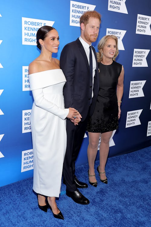 Meghan Markle and Prince Harry enjoyed a glamorous night out in New York City on Tuesday. The couple were being feted at the 2022 Robert F. Kennedy Human Rights Ripple of Hope Gala, where they received an award for their “unwavering commitment to social change” and the work they’ve done to “protect and advance equity, justice, and human rights” through their Archewell Foundation, and the Duchess of Sussex really dressed for the occasion. She wore an off the shoulder white dress complimented by a very special aquamarine ring that was once worn by her late mother-in-law, Princess Diana.