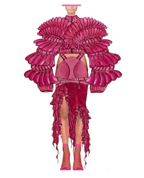 To announce and celebrate their 2023 color of the year, KitchenAid kicked things up a notch by partnering with Marta Del Rio, a stylist and creative designer who has worked with boundary-pushing performers like Lady Gaga, Billie Eilish, and Gwen Stefani. Del Rio tapped fashion designers Jackson Wiederhoeft, Tara Babylon, Tia Adeola, Bach Mai, and Man Made Skins — to produce a collection seven one-of-a-kind avante-garde outfits inspired by KitchenAid’s 2023 color of the year and their popular appliances, the stand mixer and blender.
