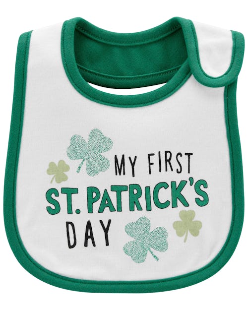There are few things better than accessorizing your baby for the holidays, and this My First St. Patrick’s Day bib from Carter’s is perfect for keeping your baby pinch-proof all day long.