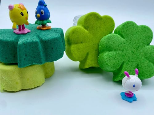 These sweet mini St. Patrick’s Day bath bombs are so fun for a festive bath, and is scented with peppermint. As the shamrock starts to dissolve in the water, a tiny little figurine will emerge for even more bath time fun.