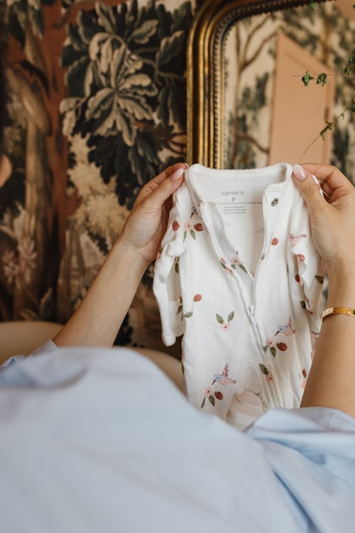 “The quality of the fabric and making sure it’s something natural (like cotton, bamboo, or linen) comes first to me. I love that many of the pieces in the My First Love collection are OEKO-TEX® certified, so I know they’re safe for my baby,” Hoàng-Kim tells Romper about picking out the perfect wardrobe. “After that, I’m all about zippers and ease of use!” Given the number of diapers a newborn goes through, this adorable floral Sleep & Play set from Carter’s is the perfect pairing of on-trend style and easy access.