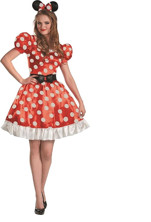 If you’re all ears to getting dressed as Minnie Mouse and Mickey Mouse, you have lots of options, like this classic Minnie Mouse costume on Amazon. The iconic red and white polka dot dress comes with a belt and matching headband with ears, while the cozy plush Mickey Mouse costume for babies comes with an attached headpiece and nose that squeaks when squeezed. The Mickey mittens have a ribbed wrist so they won’t fall off.