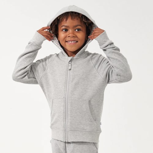 A gray hoodie is an essential for any grown-up wardrobe, so it only makes sense that the Heather Gray Zip Hoodie would be just as important a part of your kiddo’s closet. Made from buttery bamboo viscose, it’s got long sleeves and a zip-front to keep them cozy, some handy front pockets, and the hood is lined in a striped fabric for a little extra fun.