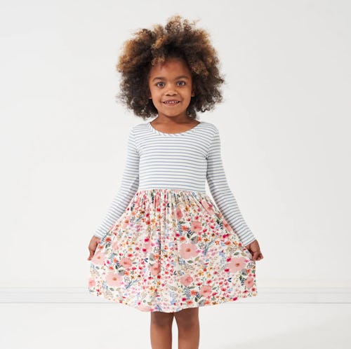 Whether your little one wants to race, twirl, or enjoy some screen time, the Mauve Meadow Stripes Skater Dress can handle it; the dress features long sleeves and a swingy knee-length fit, in Little Sleepies’ super-soft bamboo viscose fabric, to move right along with them. And the floral and stripe pattern mixing—that’s just plain cool. Layer a pair of Little Sleepies’ leggings underneath if things turn chilly.