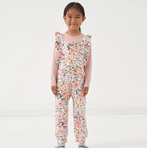 Fall is approaching, but this pair of overalls is ready for the chill; they’re made from a thicker blend of bamboo viscose and cotton that can handle lower temps (along with vigorous playing). The adorable floral print is made even cuter with the addition of ruffled straps; layer it with a matching tee, pair it with a top in a coordinating solid—even a print. These overalls will cute-ify whatever top you choose.