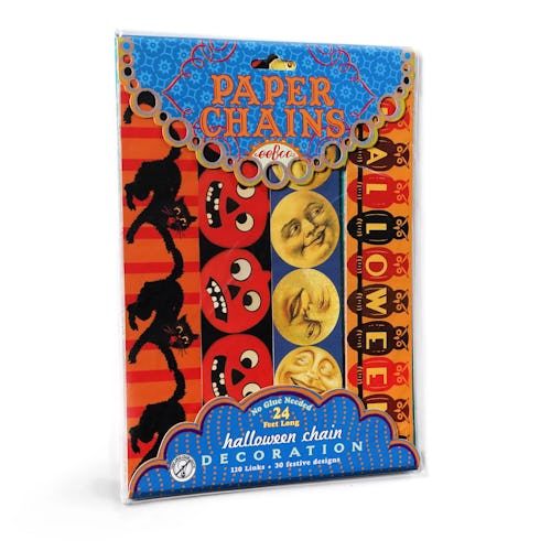 I love classic decorations and classic crafts, and this one combines both of those things. From eeBoo, this Halloween chain decoration kit includes 120 sheets to make an epic 24-foot long paper chain with incredible vintage and fun Halloween designs. Seriously, the paper in this is so pretty, and it’s also pretty sturdy, so it should last for a few seasons if you pack it up nicely. It’s a nice, mess-free craft that you can do in front of Hocus Pocus one night as a family activity. (And it’s perfect for parties or bedroom decorating.)