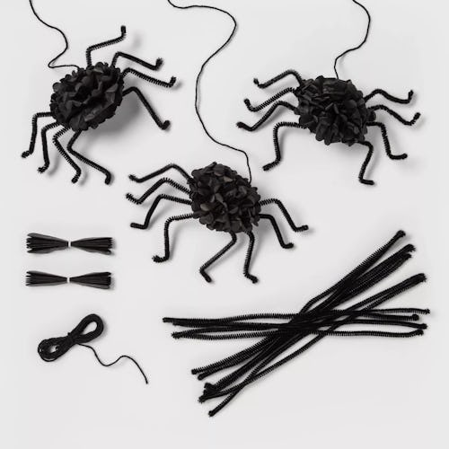 If you want a really fun Halloween party decoration or just a dose of spookiness in your house, you need this spider tissue pom-pom craft kit. It’s literally so easy to whip together, and you can hang them all over the place for a really fun, creepy effect.