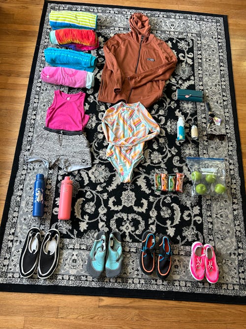 With this bag, it’s absolutely not a big deal. This is everything we’d need for a day out on the water, including towels for the family, a hoodie for me, who tends to get cold after splashing around, and an extra outfit for my daughter who, unlike the rest of us, hates making the hike back to the car in a wet bathing suit. (Said wet bathing suit can easily be slipped into the wet bag on the way back to the car.)