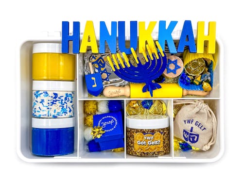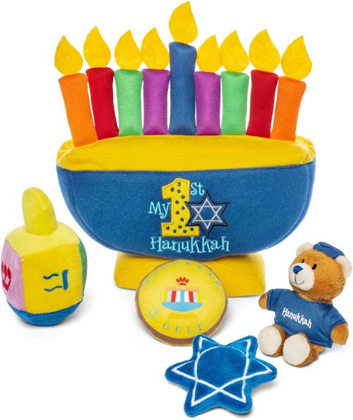 Kiddos will look forward to rolling up their sleeves and digging into this Hanukkah-themed sensory kit from Young + Wild & Friedman, intended for children 3 and up. It comes with three jars of nontoxic dough, crunchy chocolate-scented gelt slime, a dreidel and Star of David stampers, and other items that encourage lots of Hanukkah-themed pretend play. Of course, between the dough that smells good enough to eat and the small pieces, like gems and crystals, grown-ups should keep an eye on their children during play time — and obviously join in on the fun!