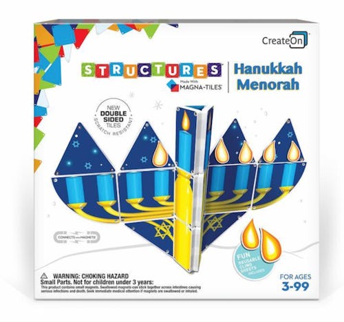 Add to your family’s Magna-Tiles collection with this 19-piece Hanukkah menorah set, recommended for ages 3 to 99 — and therefore perfect for a night of family fun. The double-sided tiles (adorned with a variety of holiday symbols) allow for plenty of construction and creativity, as they apparently can be flipped to reveal a new Hanukkah candle each night. All Magna-Tiles are compatible with other sets, so the possibilities are endless.