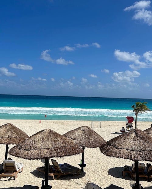 … which one of my travel companions who’d been to Cancún more times than she could count told me was the nicest she’d seen. With over a hundred chairs and umbrellas, I always had a place by the water to hunker down with a book, which I’ll admit was my second favorite thing to do. My favorite thing to do on the beach was use the various QR codes located on the umbrellas to order tacos, guacamole, and (you guessed it) more margaritas, delivered promptly by friendly staff.