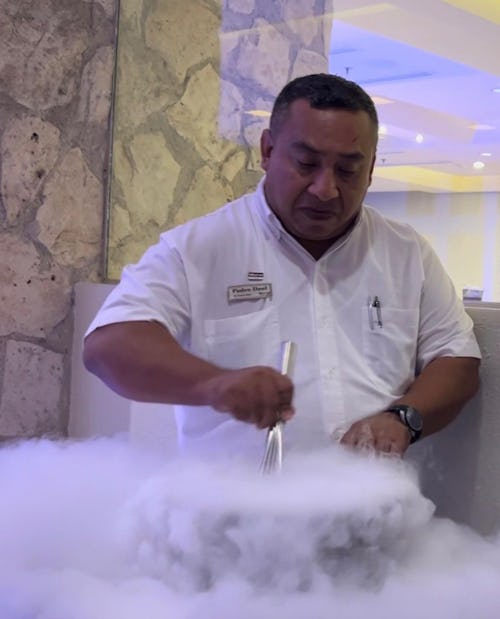 The first night we were treated to the resort’s most popular themed meals: Maya night. While normally held on the beach, the strong winds necessitated a move to a secluded area by the pool, where we enjoyed Mayan language music and dancing, before moving to the poolside restaurant Viento for more food than I possibly could have finished, but damned if I didn’t give it my all. (My favorite, and it was hard to pick, was the cochinita pibil, a slow-roasted pork dish.) We were also treated to a seven-course meal at Oceano, which involved a decadent surf and turf and table-side alchemy involving liquid nitrogen. (Try as I may, I couldn’t pick a favorite that evening.)