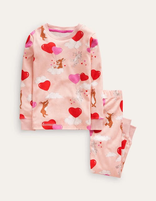 Boden Kid’s Valentine’s Day pajamas lineup isn’t extensive, but what they do have is super vibrant and adorable. This long-sleeve set features the sweetest bunnies, clouds, and heart balloons, and if you love the pattern for daytime wear, it’s also available as a skirt, dress, or leggings.