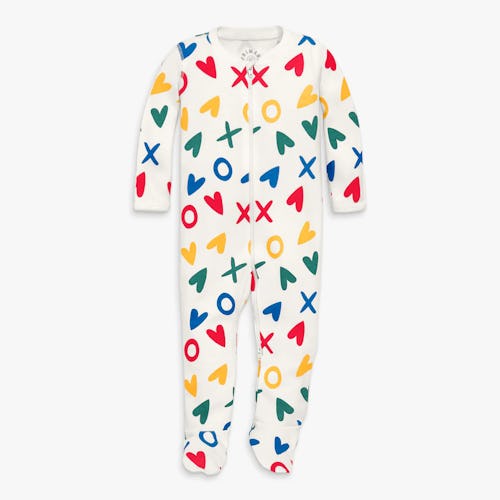 This affordable cotton Valentine’s Day baby pajama footie from Carter’s features a classic motif: repeating bright red hearts on a crisp white backdrop. If you love the pattern but your child is older, it comes in two-piece sets up to size 14Y.