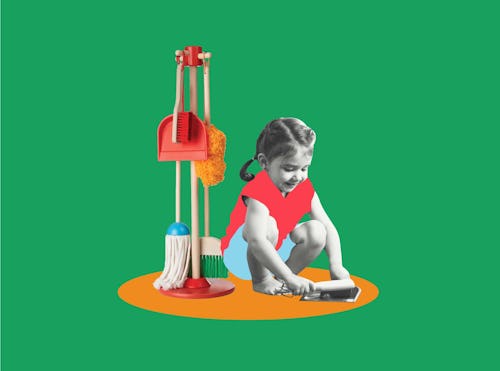 Letting your child pretend clean to their heart’s content is all fun and games until you realize there are serious developmental benefits behind this type of play — it just might become the activity you want them to engage in the most. “As brains develop, they drive certain behaviors naturally that then help kids to acquire new skills,” says Phillips. And with regard to playing cleaning, she says “there's tremendous cognitive benefit to allowing space for that type of play: language, motor, creativity, flexible thinking, problem-solving, and also that social emotional piece of developing empathy.”
