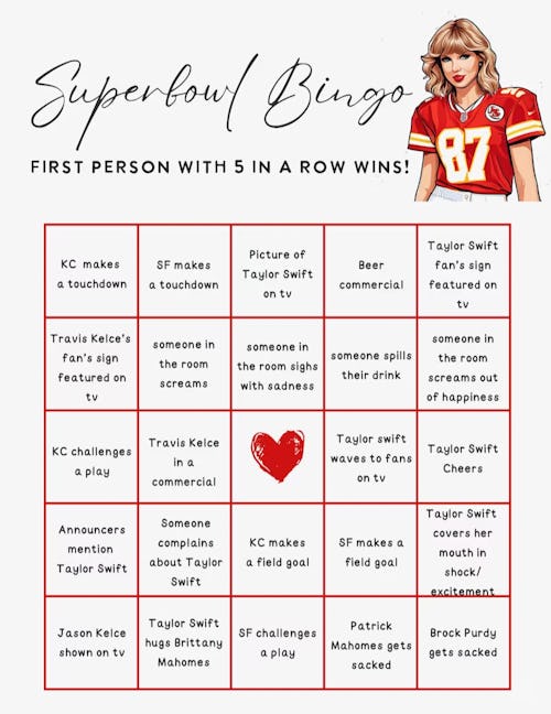 Taylor Swift Super Bowl Bingo