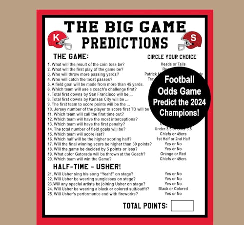 Super Bowl prediction game