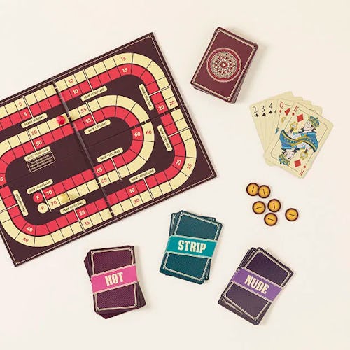 Hey, it worked in college. Why not take it all off for each other while playing cards? If you’re looking for a new take on the classic, this strip poker set from Uncommon Goods promises to be “extra spicy.” You earn points by having the best poker hand, which then allows you to draw reward cards from one of four categories: Strip, Cuddle, Talk, and Climax.