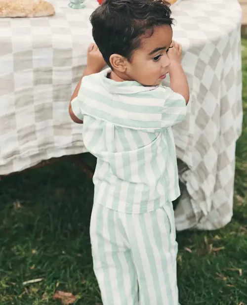Older boys might not be so willing to let you dress them in tiny bunnies, chicks, and carrots. But if you’re able, maybe you can still sneak some fun colors info their outfit for the day via a fun short or pastel striped shirt.