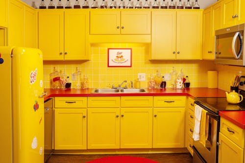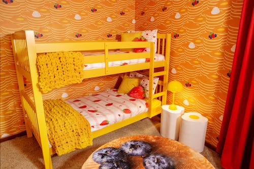 Sponsored and rented out by HomeToGo, the Eggo House of Pancakes is a literal mountain house designed to look like a stack of pancakes on the outside — and the inside. There is syrup dripping from the roof line, the hot tub on the patio looks like an enormous stack of pancakes, and the trademark yellow and red of the iconic Eggo logo can be seen everywhere. And the inside? It is a breakfast lovers’ delight.