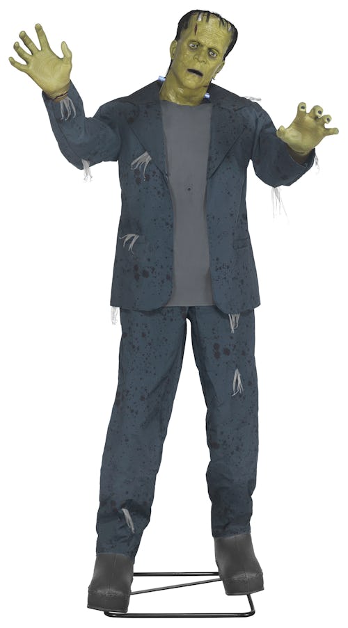 Take it back to the vintage days of Halloween with the brand new 7-foot-tall Frankenstein’s Monster. Fully licensed by Universal, this is a near-perfect representation of the original movie monster, and the motors inside move the arms and facial features, and it even speaks some lines from the original Frankenstein movie.