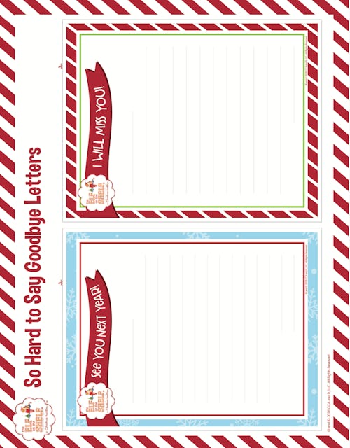 When your Elf on the Shelf has to make their way back to the North Pole (or a decorations box in the basement), you need to know just what to say. Well, you can get two printable goodbye letter templates from the Elf on the Shelf website so that you always write the right words, every time. The free download comes with two blank goodbye letters; one that reads “See you next year!” and “I will miss you!” on the top. It’s up to you to decide which one strikes the right emotional chord with your kid. (And if your child is old enough, be sure to disguise your handwriting so that you don’t have an elf-tastrophe on your hands.)