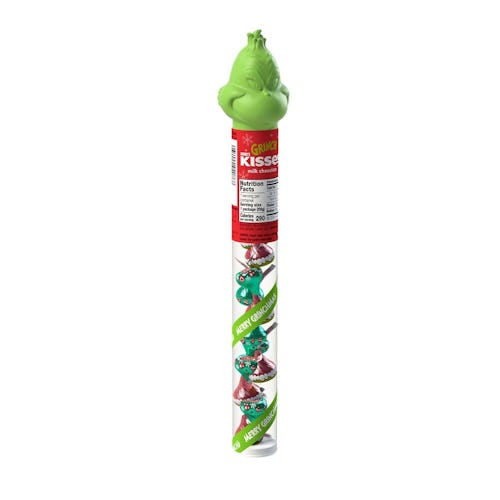 Don’t forget Sherry’s trick of leveling up gift-wrapping by including gifts in the packaging itself. An easy place to start? Try tying this Hershey's Kisses Grinch milk chocolate-filled plastic cane into the bow of a wrapped gift for an extra-sweet touch.
