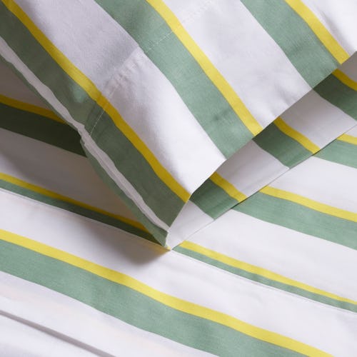 A child’s bed is often the room’s central focus, so decking it out with new sheets, a bright comforter, or a fun pillow can be an affordable way to add pizazz. Some bedding you won’t be able to resist: This plush, lightweight scalloped comforter that recalls calm oceanic waves, these supersoft brushed cotton sheets in offset stripe, and this playful throw pillow that’s reminiscent of a paint palette — except no cleanup required.