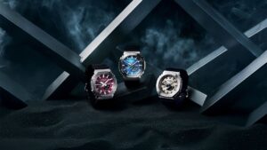 The GBM-2100 models come in three standout colourways – blue, burgundy, and light yellow-gold – each featuring a refined metal bezel, durable bio-based resin band, and slim profile. With Bluetooth® connectivity, solar-powered technology, and 200-metre water resistance, this collection is engineered for both performance and presence.