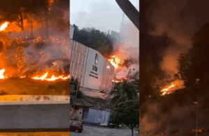 Forest fires can either be a natural occurrence due to intense weather, or they can be caused by human activities. Either way, these disasters can be terrifying to witness, let alone experience them. One incident that happened yesterday (Wednesday, 29th October) has since gone viral on social media, and from the images and videos circulating, it looked as if it came straight out of a suspenseful and scary scene of a film.